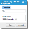 The CMDB Import workflow block performs the SCCM integration. It has a parameter that starts the import from SCCM to the Service Manager CMDB. This workflow block submits an integration job but does not keep track of the job status.