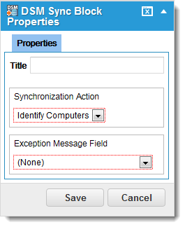 Use the DSM Sync workflow block to synchronize the Ivanti DSM application data to Service Manager.