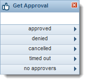 | no approvers | The request did not receive the minimum number of approvers and the workflow is processed according to the settings in the Properties window. |