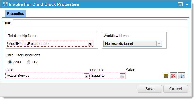 | Relationship Name | A valid relationship defined for the child object in a relationship. Choose from the drop-down list. |