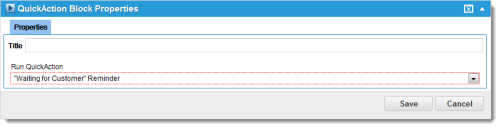 Use the Quick Action workflow block to define a quick action to execute when a business process has completed. You can select an action associated with this business object.