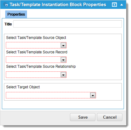 | Select Task/Template Source Record | The source task or template record object. Select from the drop-down list. |