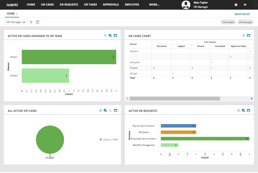 •Active HR Cases assigned to HR Team