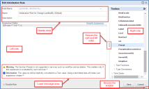 Upper message area: The application displays error information. This area states if the expression has errors, warnings, or informational messages. It can show any of the following messages: