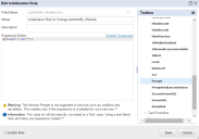 4.To add a new business rule, expand the section for a business rule and click Add <type of rule> Rule.  For example, to add an initialization rule, click Add Initialization Rule. The application displays the Add <type of rule> Rule dialog box, including the Expression Editor.