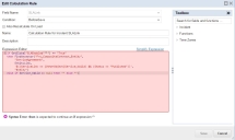 5.To edit an existing business rule, click the edit icon . The application displays the Edit Business Rule dialog box, including the Expression Editor.