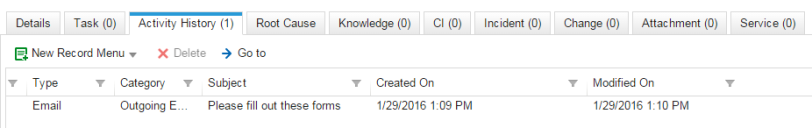 3.Click the Activity History tab. The application displays a list of activities related to that record.