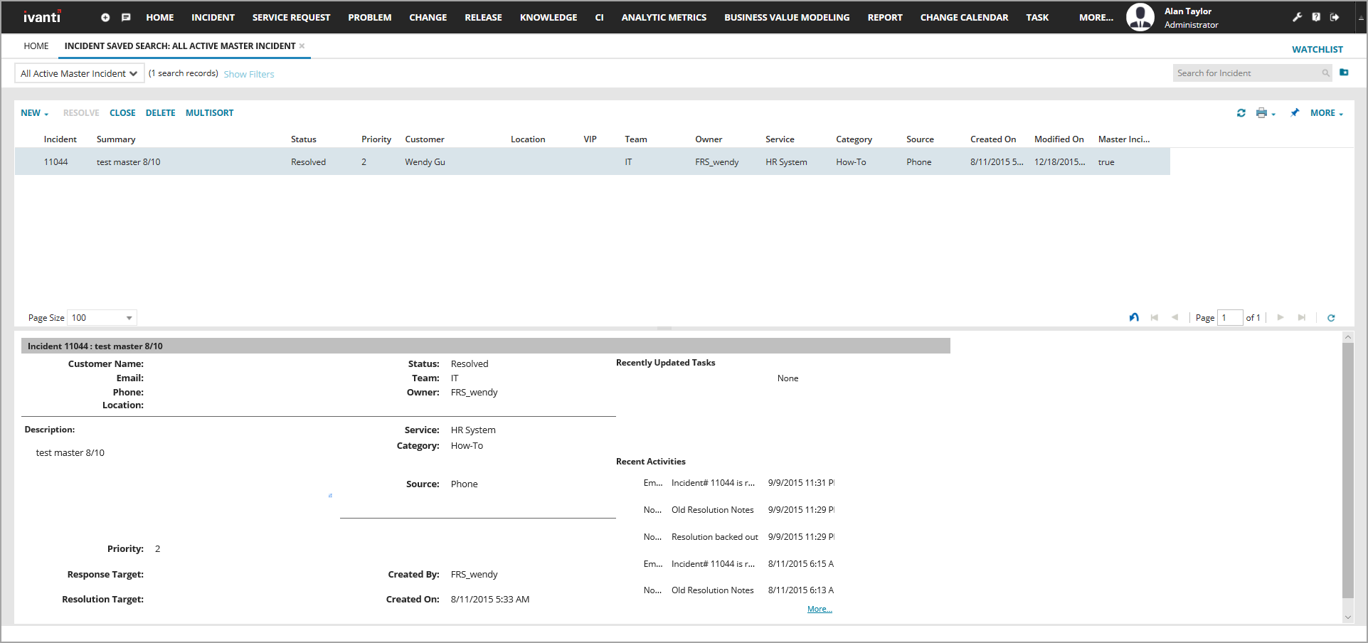 Service Manager contains a report that shows the number of incidents that were resolved by a master incident. To use the report, do the following: