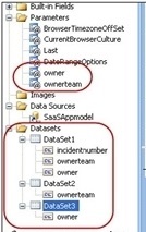 You have now created three datasets: one for the report and two for the parameters, as shown below: