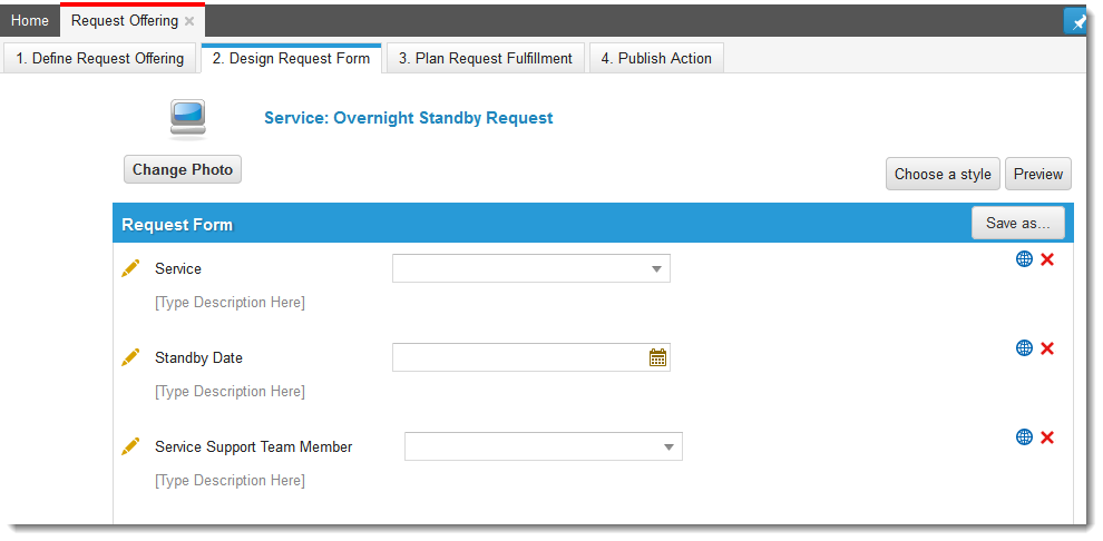 Sample Request Offering - Item Configuration Editor for Service Support Team Member