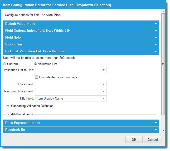 | Validation List to Use | A validation list that must be defined in the business object before it appears here. |