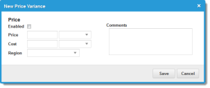 | Enabled | Enables the price variance feature. (You must also select Enabled in the Price Item window. |