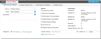 9.Continue editing the service request offering as described in Creating a Request Offering.