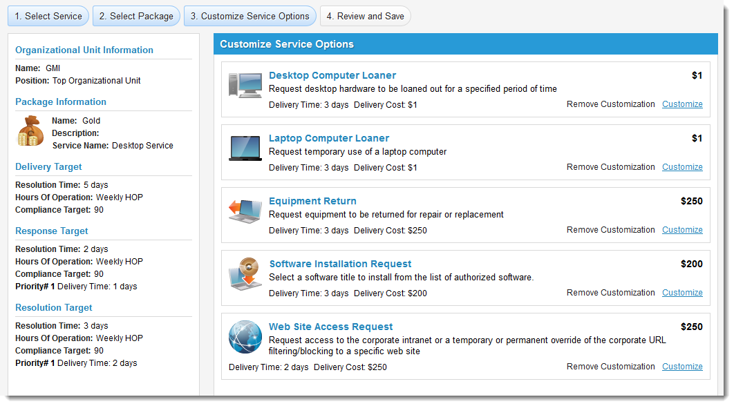 Before creating a Service Level Agreement, you must create your Request Offerings and any optional Service Level Packages. Service Manager includes various basic services that you can use or modify to fit your organization.