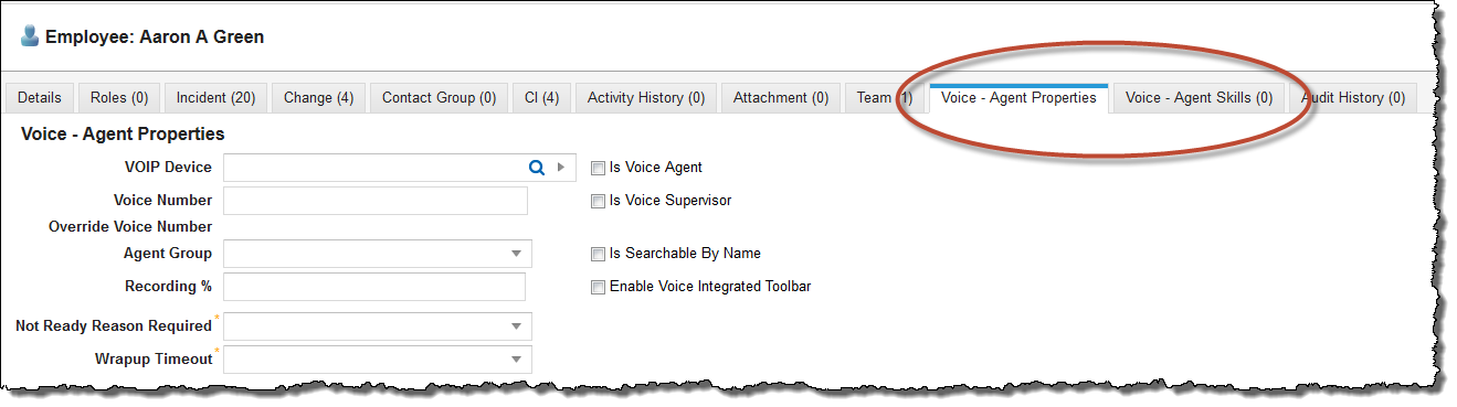 4.Check Enable Voice. The system displays the Voice - Agent Properties and Voice - Agent Skills tabs.
