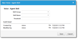 6.Click New Agent Skill. The system displays the New Voice - Agent Skill window.