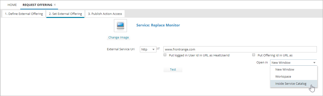 7.Click Change Image to edit the default image. See Default Icons for Request Offerings.